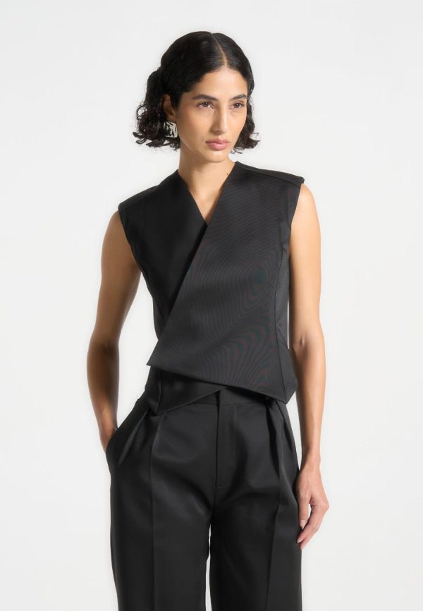 This waistcoat features a wrap silhouette with concealed buttons for a tailored, sleek look. Perfect for office-wear or special occasions, this waistcoat pairs well with any outfit to add a tailored touch.