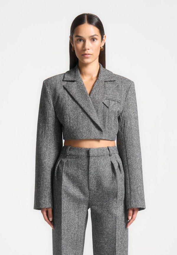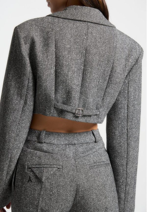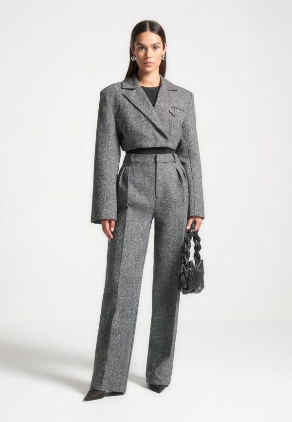 Manière De Voir Blazers & Waistcoats | Tailored Wool Wide Shoulder Blazer Grey Women