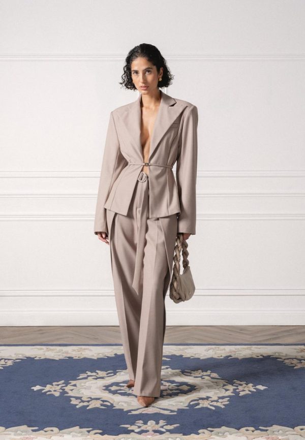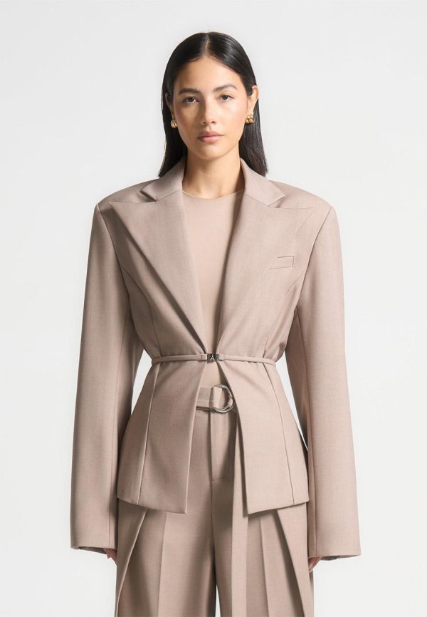 Enhance your professional wardrobe with our Wide Shoulder Sateen Blazer in sleek black. Featuring a twin belt and wide shoulder design, this blazer provides a flattering and structured silhouette for a confident and polished look.