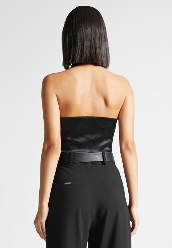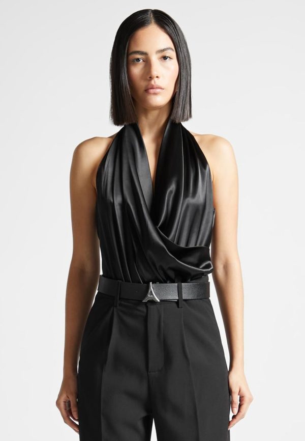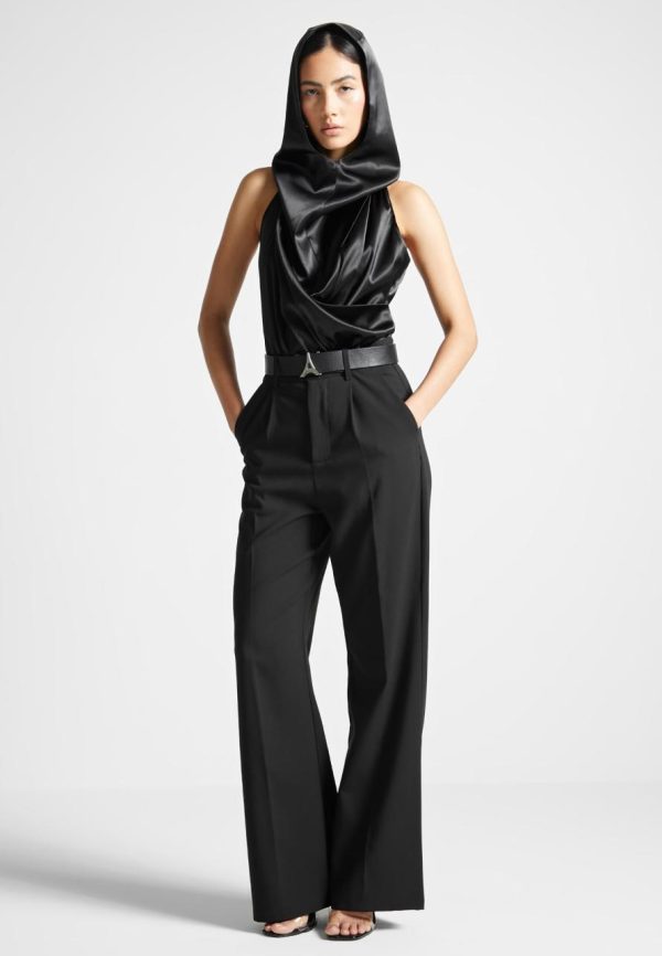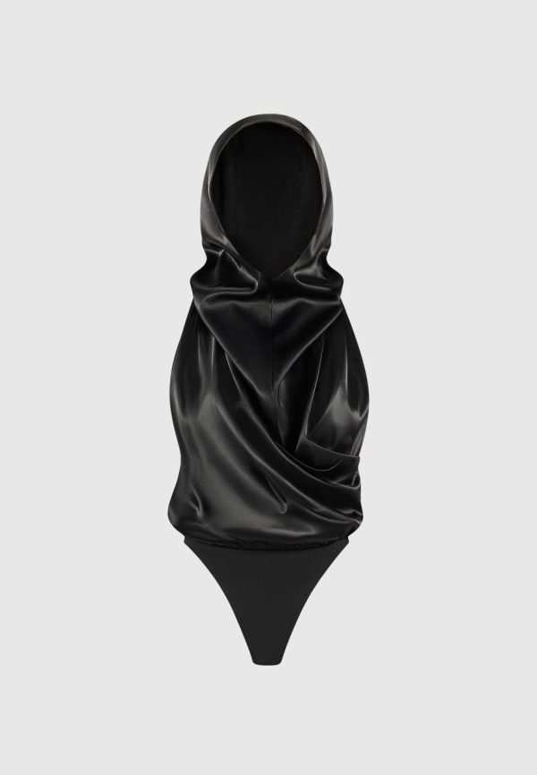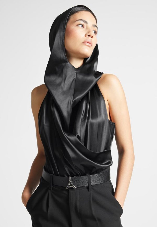 Manière De Voir Bodysuits | Hooded Cowl Neck Satin Wrap Bodysuit Black Women