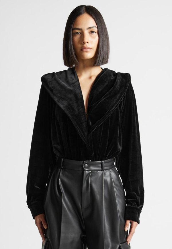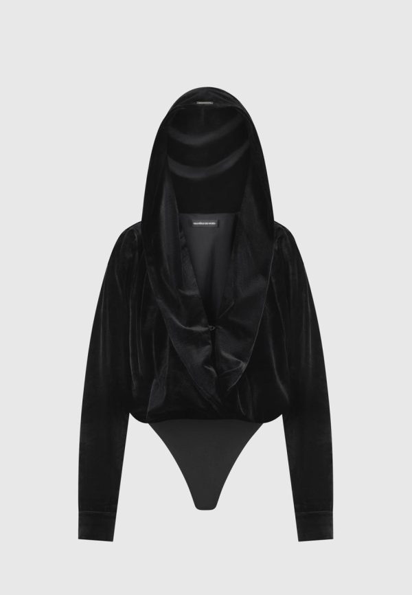 Made from a luxurious velour fabric, this hooded bodysuit is sure to become a wardrobe staple. Its soft-touch construction ensures all-day comfort, perfect for transitioning from day to night.