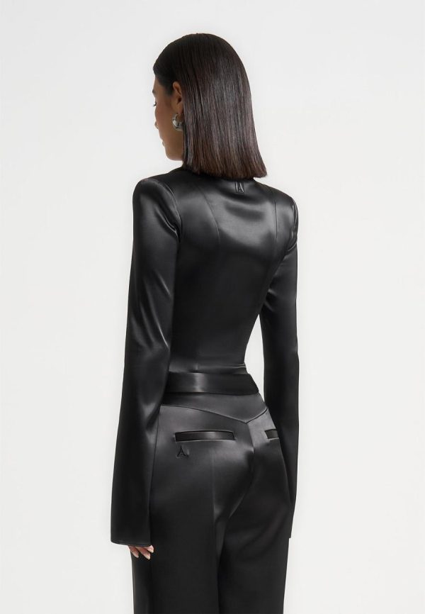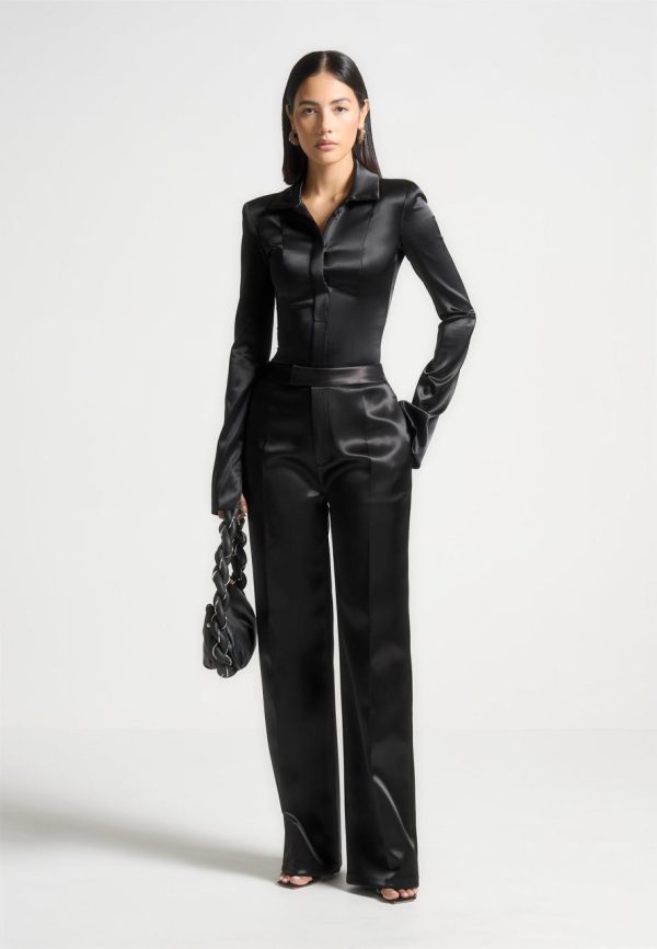 Manière De Voir Bodysuits | Wide Shoulder Satin Shirt Bodysuit Black Women