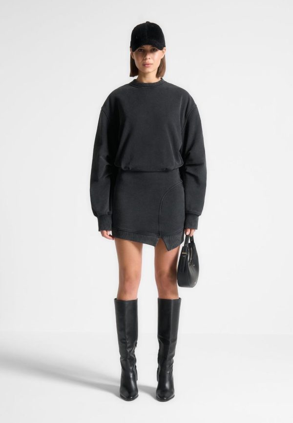 Manière De Voir Dresses | Asymmetric Hem Jumper Dress Washed Black Women