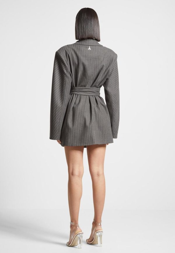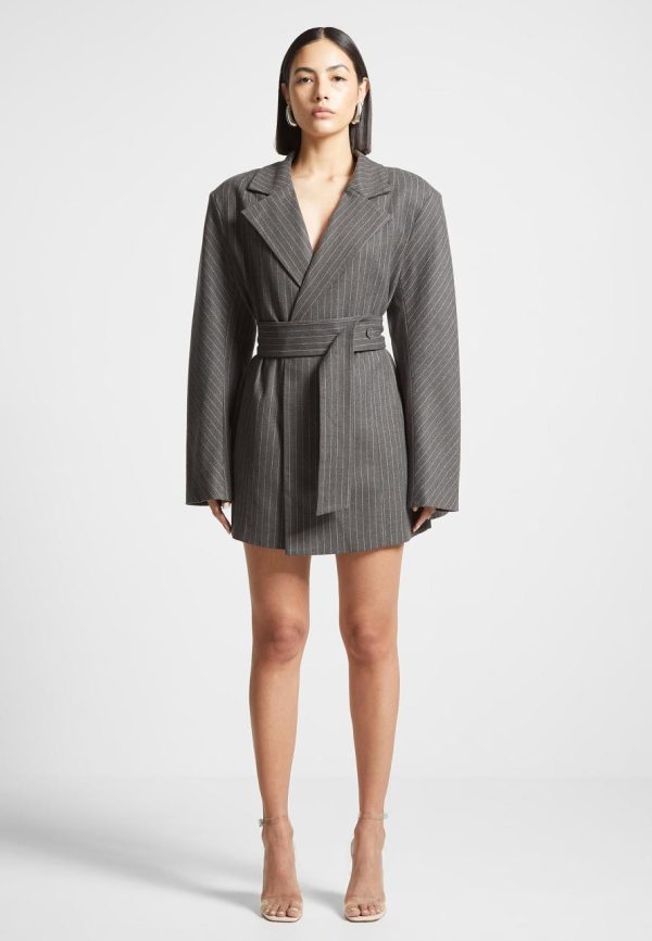 This classic design blazer dress can take you from day to night in style. With an oversized silhouette, it features subtle pinstripes for a timeless yet modern look.