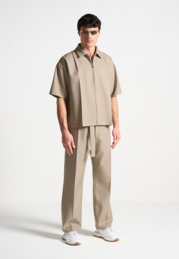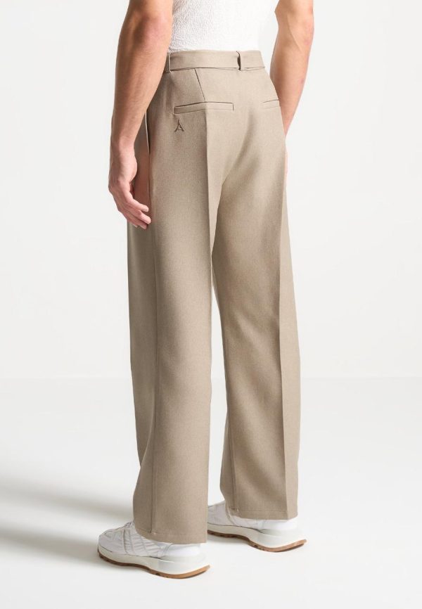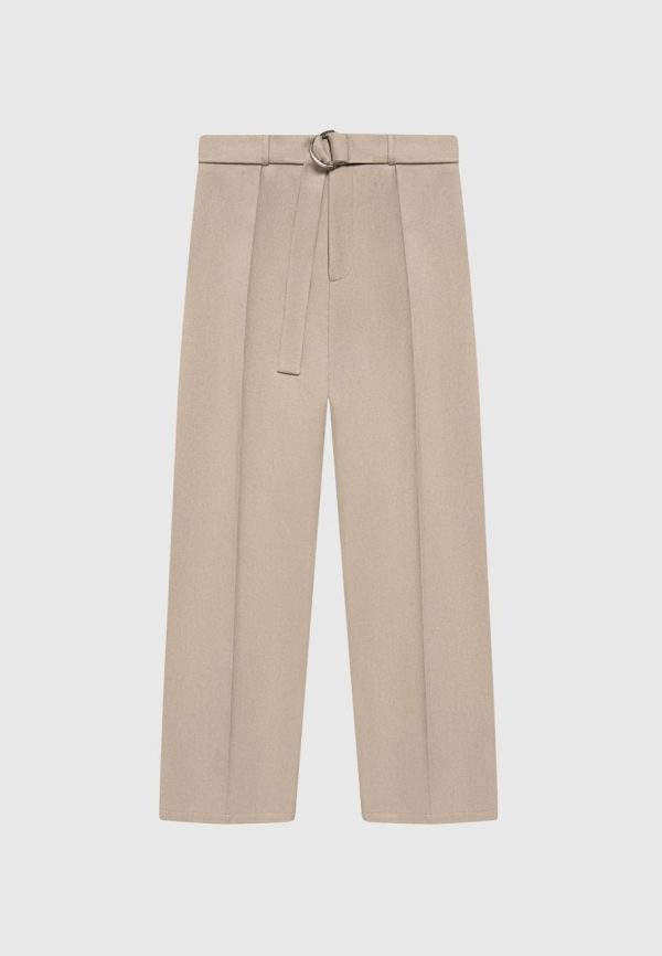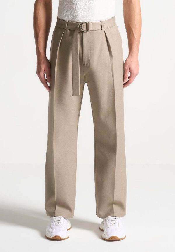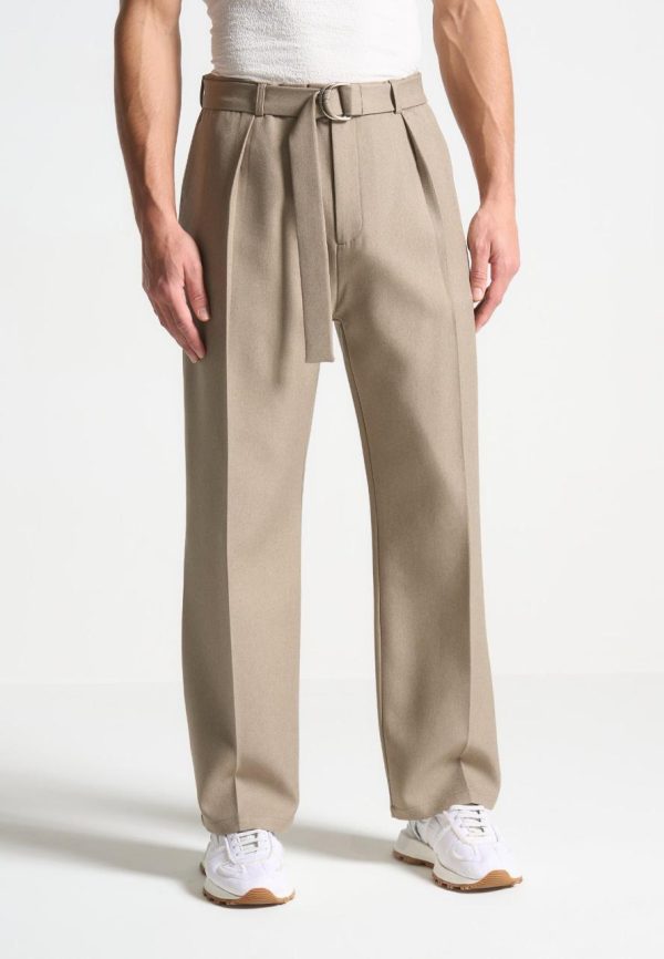 Manière De Voir Formal Co-Ords | Relaxed Fit Textured Belted Tailored Trousers Beige Men