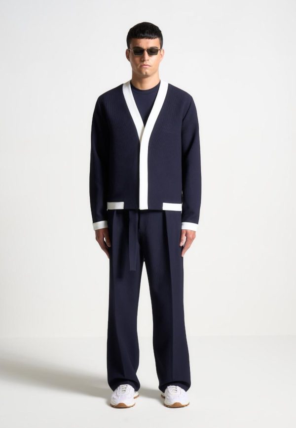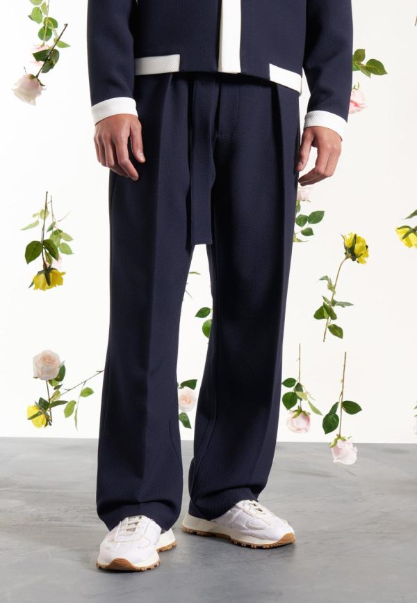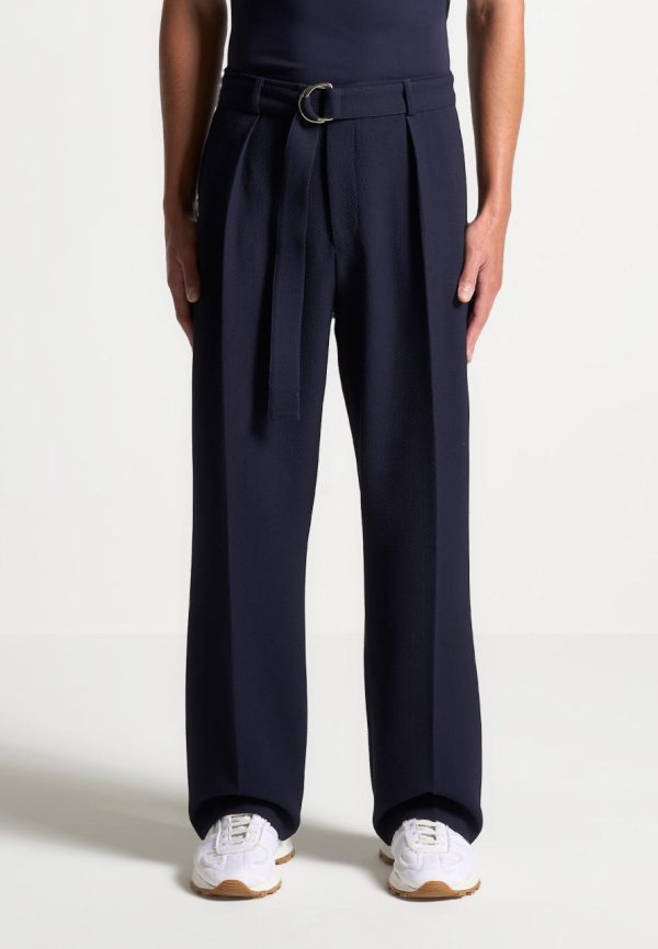 Crafted from high quality, textured fabric, the Relaxed Fit Textured Belted Tailored Trousers in Navy are meticulously designed to elevate both professional and formal attire. Featuring a sleek belted waist for a blend of style and practicality, these Trousers are an ideal choice for the discerning individual seeking to make a sophisticated fashion statement.