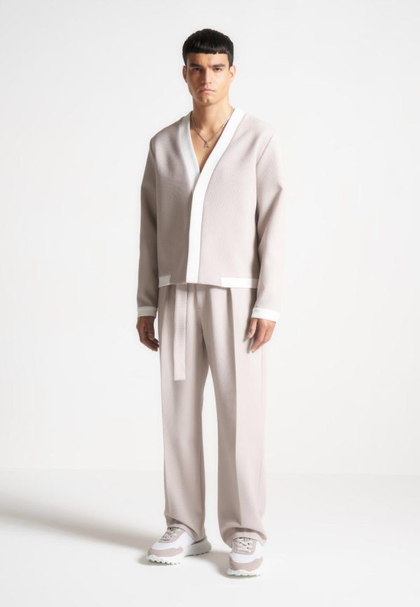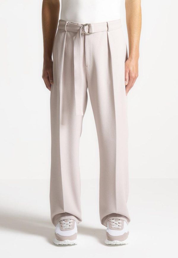 Crafted from high quality, textured fabric, these Relaxed Fit Textured Belted Tailored Trousers in Stone are meticulously designed to elevate both professional and formal attire. Featuring a sleek belted waist for a blend of style and practicality, these Trousers are an ideal choice for the discerning individual seeking to make a sophisticated fashion statement.