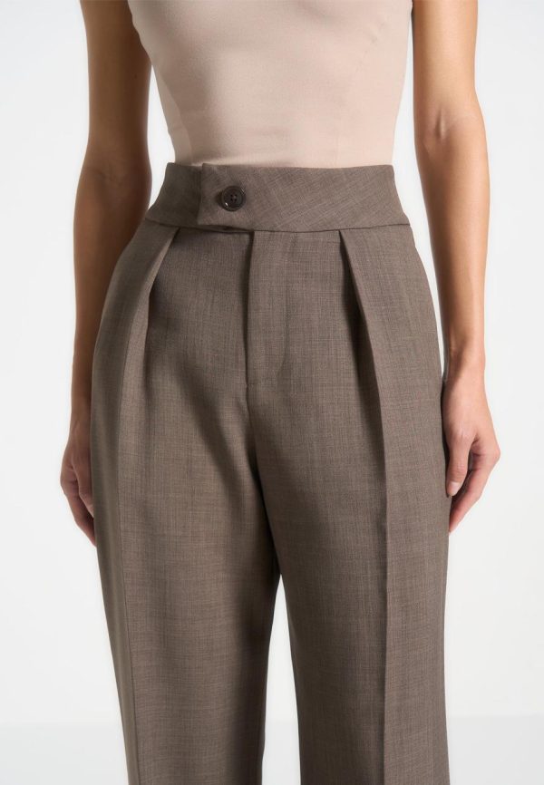 Crafted with precision, these High Waisted Tailored Trousers offer a perfect fit and sophisticated style. Made from high-quality fabric, they bring a refined elegance to your formal wardrobe, ideal for adding a touch of class to any occasion.