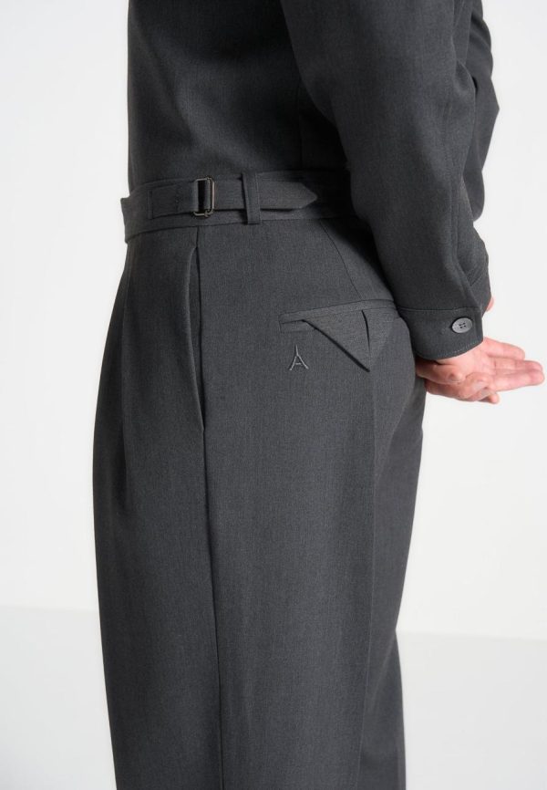 Elevate your wardrobe with our Hatched Pleated Tailored Trousers in Grey, offering a relaxed fit for enduring comfort throughout the day. With side slip pockets and a pleat to crease detail, these trousers effortlessly blend practicality with style. Perfect for both smart casual and formal occasions, these versatile trousers are a must-have addition to your collection.