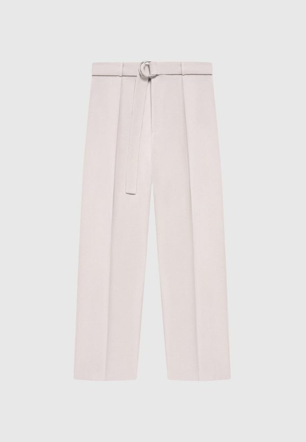 Manière De Voir Formal Trousers | Relaxed Fit Textured Belted Tailored Trousers Stone Men