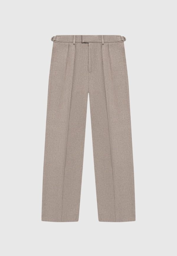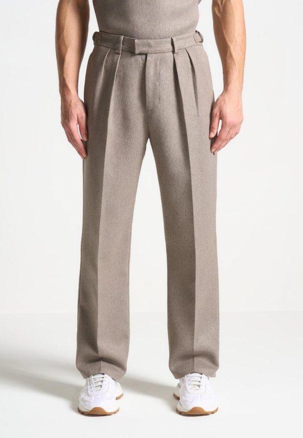 Elevate your wardrobe with our Textured Pleated Tailored Trousers in Taupe, offering a relaxed fit for enduring comfort throughout the day. With side slip pockets and a pleat to crease detail, these trousers effortlessly blend practicality with style. Perfect for both smart casual and formal occasions, these versatile trousers are a must-have addition to your collection.