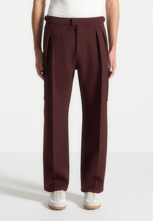 The Relaxed Fit Twill Pocket Trousers in Wine Red combine effortless style with comfort, crafted from premium twill fabric for a durable yet polished look. Designed with convenient side pockets, back welt pockets and an adjustable waistband for a tailored fit, these trousers offer versatile elegance, ideal for both casual and refined ensembles.