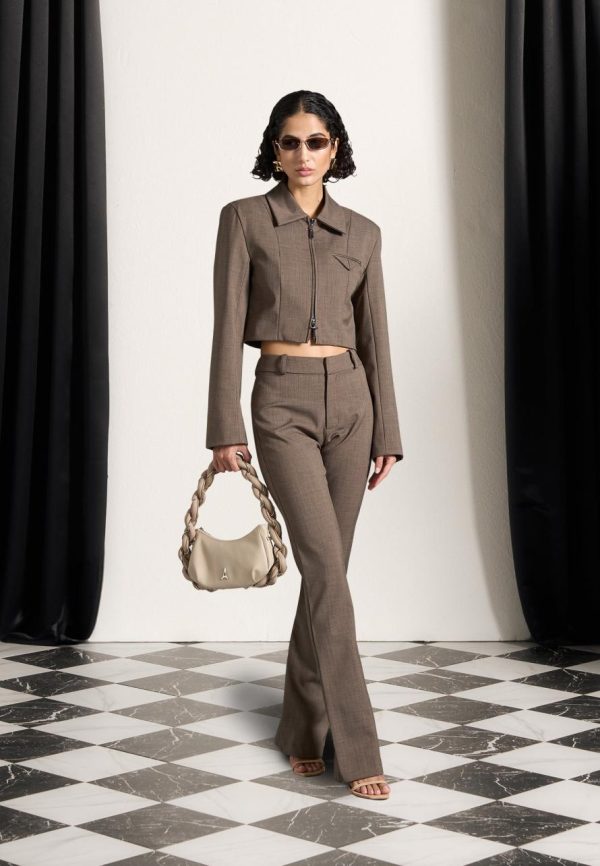 Manière De Voir Formal Trousers | Tailored Mid Rise Trousers Dark Taupe Women
