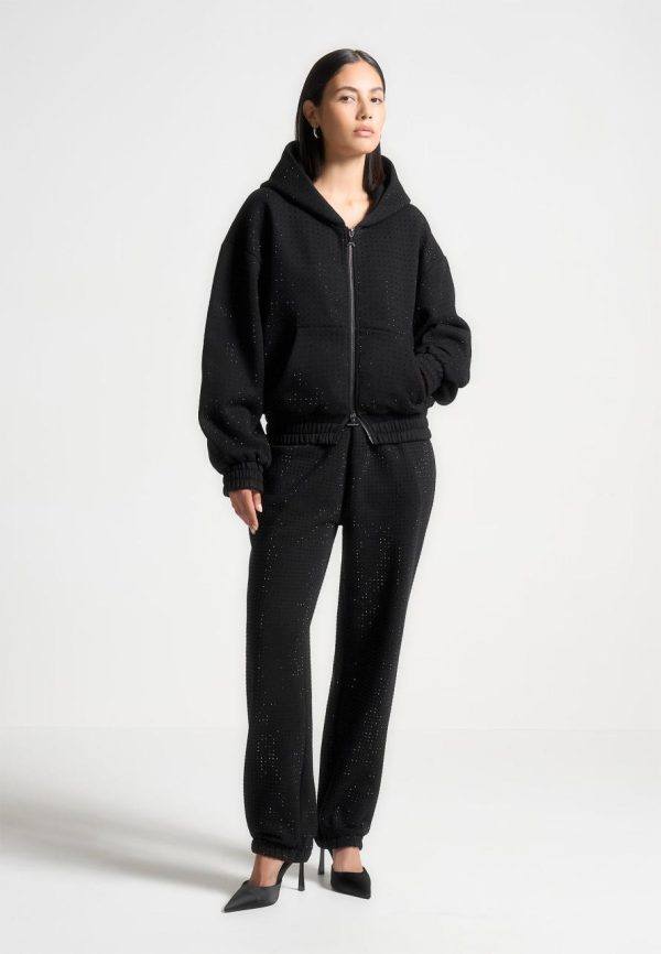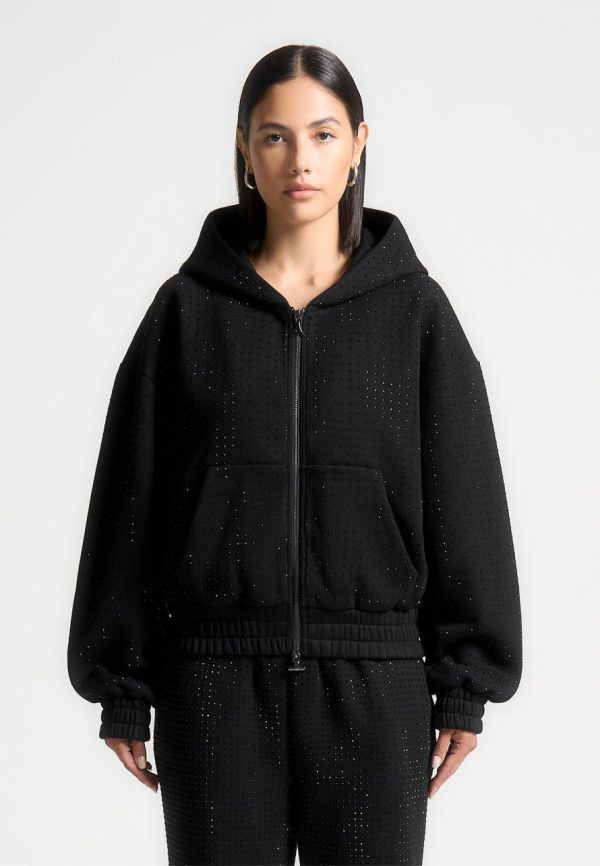 Manière De Voir Hoodies | Rhinestone Zip Through Hoodie Black Women