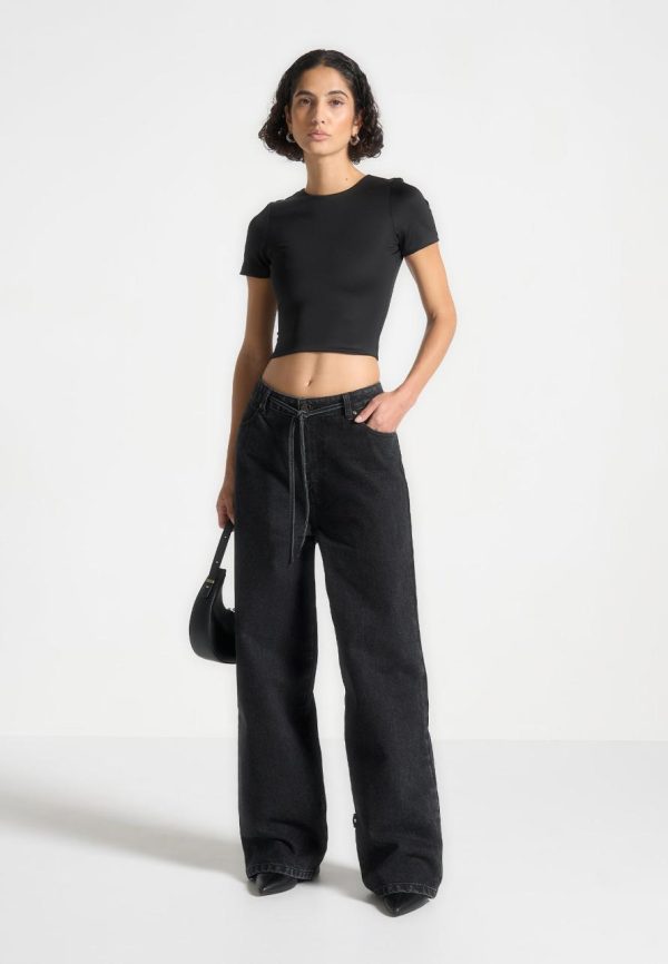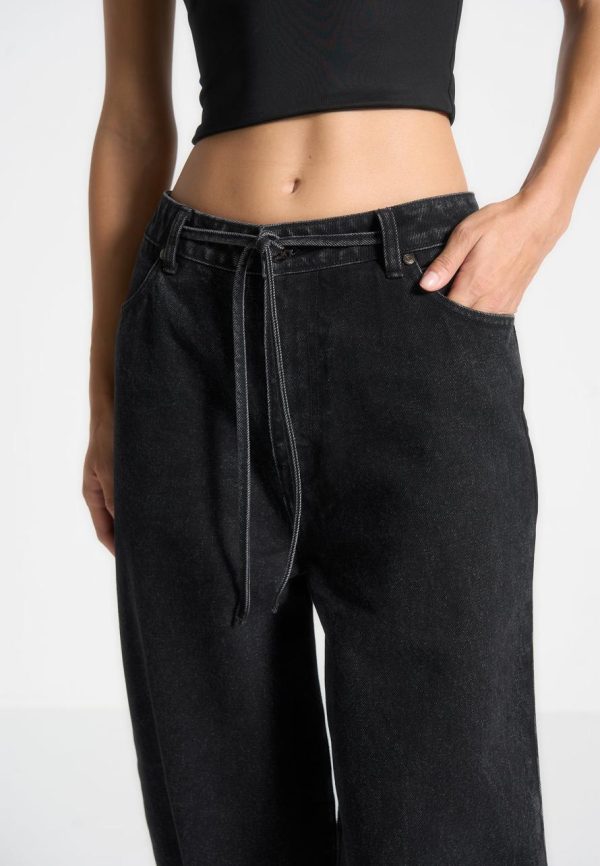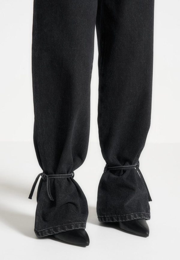 Elevate your look with our Baggy Jeans in Washed Black. Featuring distinctive hem and waist tie details, these jeans bring a subtle touch of sophistication to any ensemble. Crafted from high-quality denim, they offer a perfect blend of comfort and style. Enhance your wardrobe with these versatile, statement-making jeans.