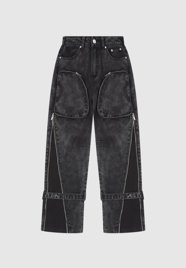 Manière De Voir Jeans | Zip Detail Denim Cargo Pants Washed Black Women