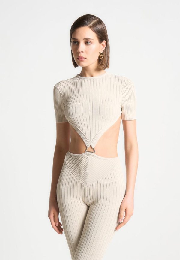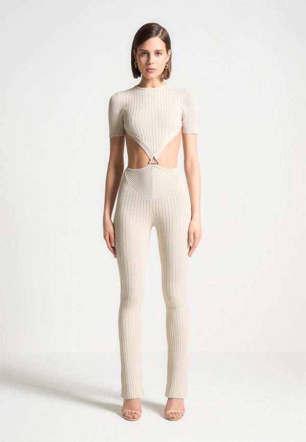 Perfect for nights out, this jumpsuit features an exposed back and carefully placed contour panels at the waist to mimic a cinched waist.