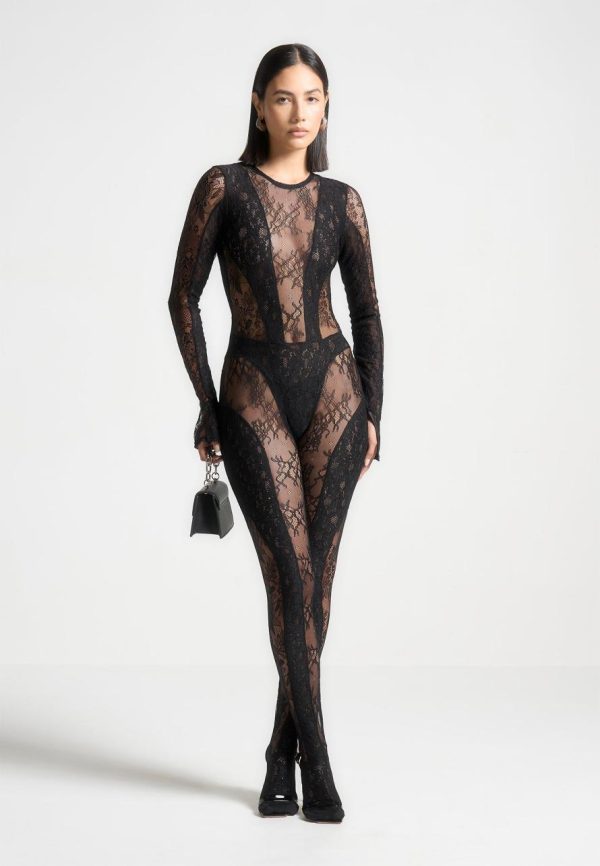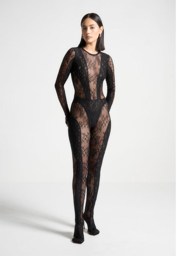 Manière De Voir Jumpsuits | Lace Backless Footsie Jumpsuit With Pearl Detail Black Women
