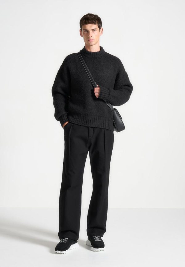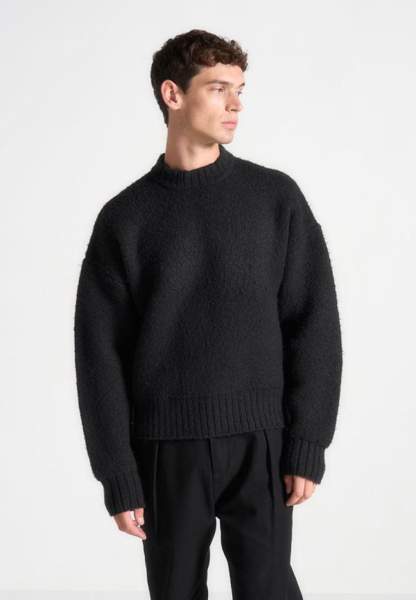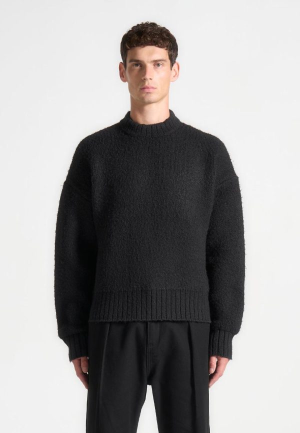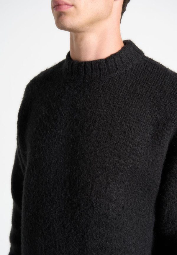 The Brushed Wool Knit Jumper in Black redefines classic knitwear with a contemporary edge. Featuring a long sleeve crewneck silhouette, it’s crafted from luxuriously soft wool for ultimate comfort. Perfect for layering or as a statement piece, this Jumper is a versatile essential for elevating your seasonal wardrobe.