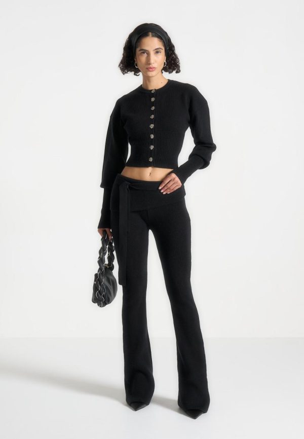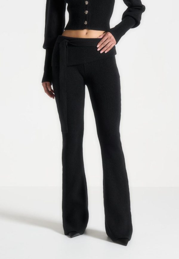 Manière De Voir Knitwear | Knitted Fit & Flare Leggings With Belt Black Women