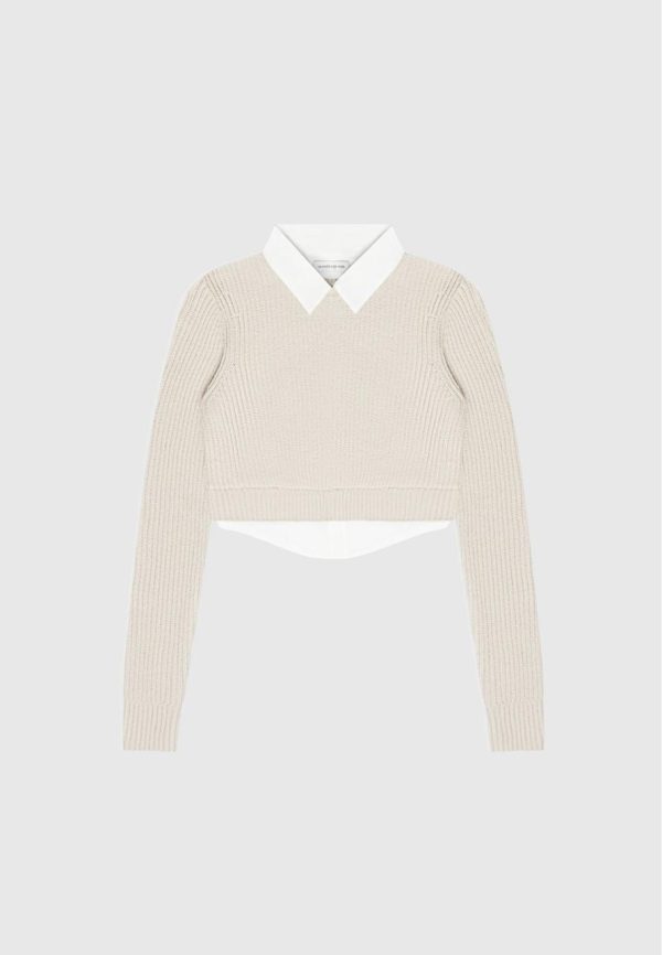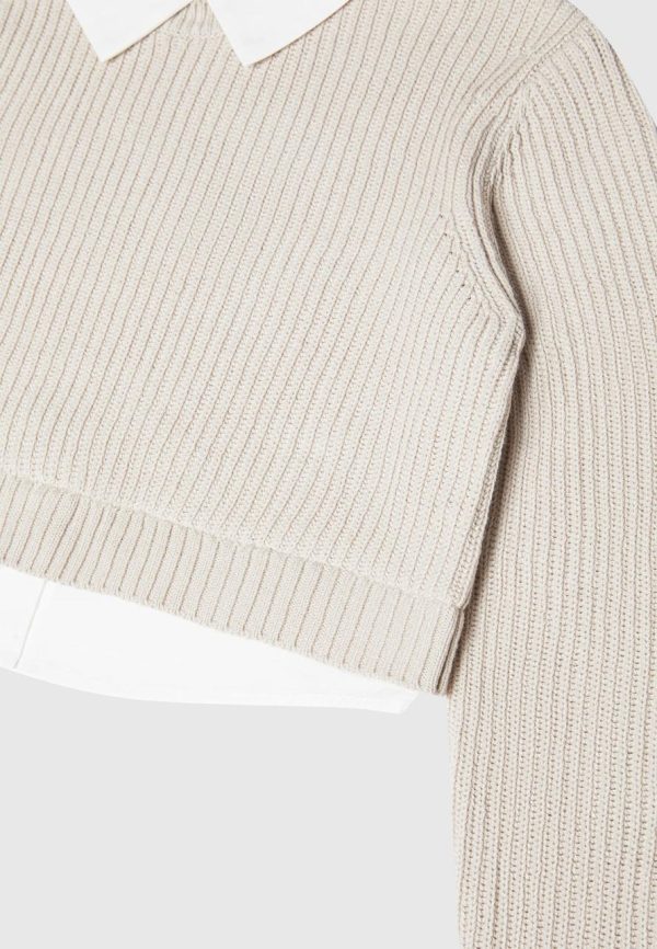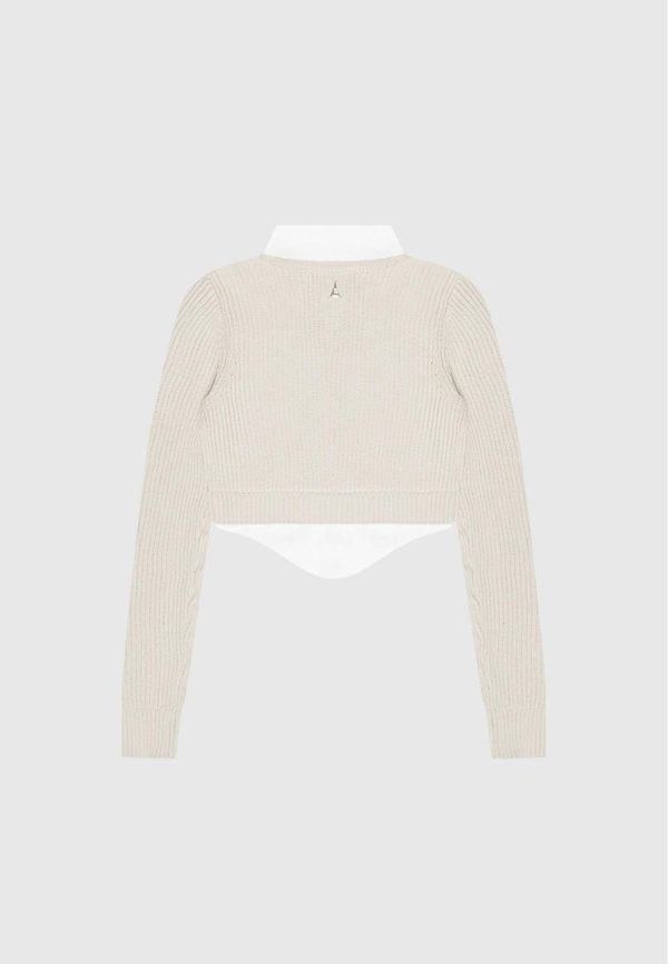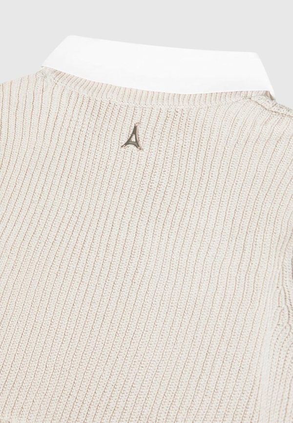 Manière De Voir Knitwear | Knitted Jumper With Shirt Detail White/beige Women