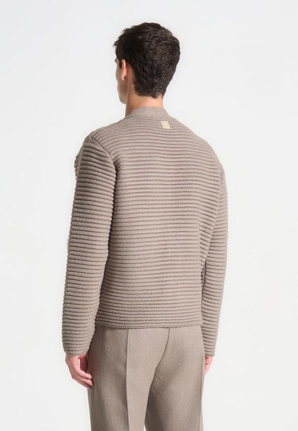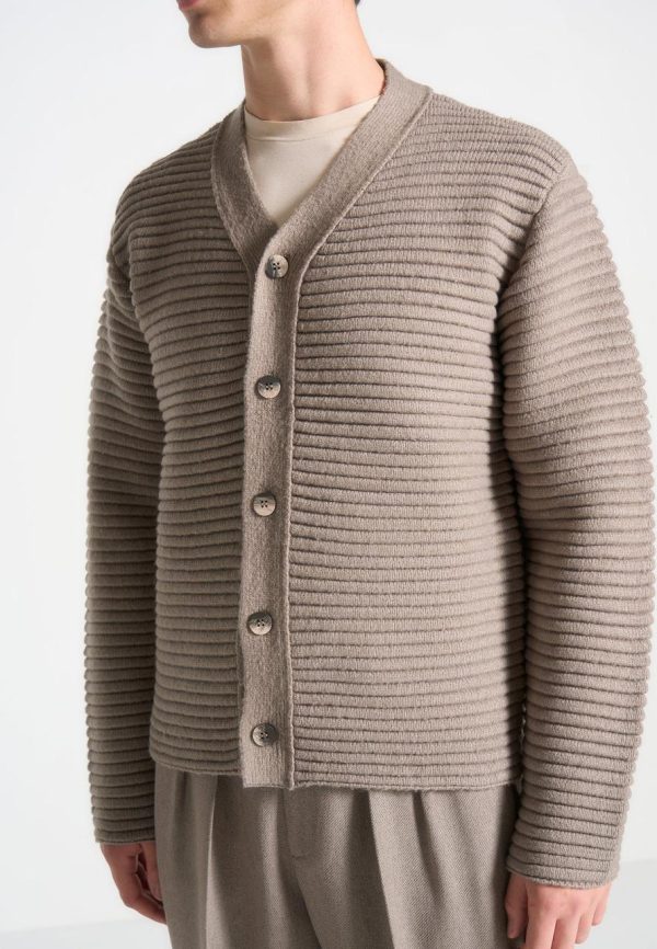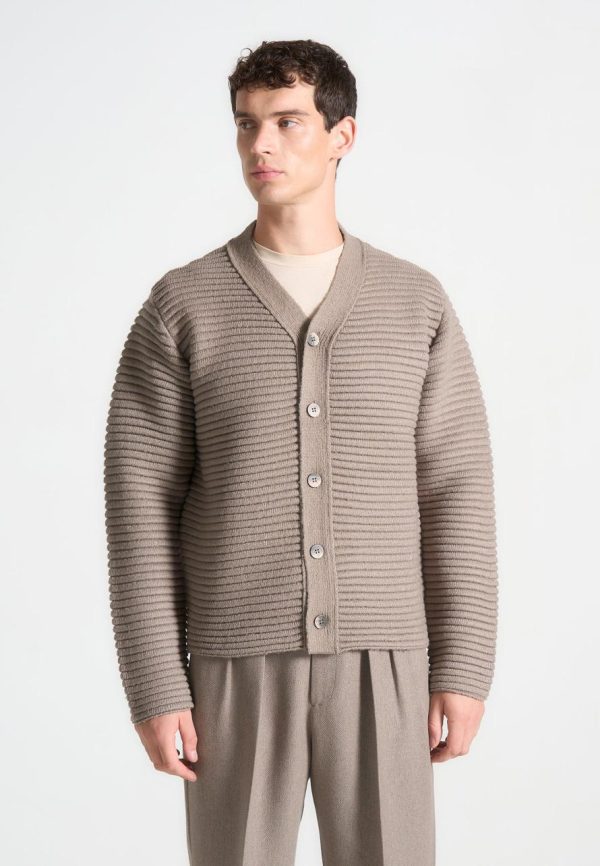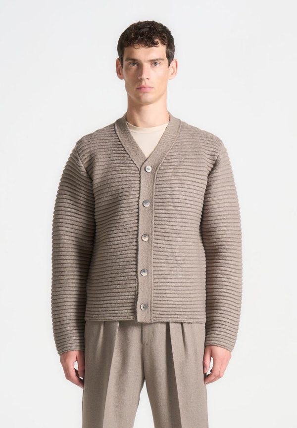 The Ribbed Knit Cardigan in Taupe is a versatile wardrobe essential crafted from soft, high-quality knit. Featuring a classic double-breasted design, it adds a refined touch to any outfit. The regular fit and structured silhouette ensure both comfort and style. This timeless Cardigan effortlessly transitions between seasons, making it the perfect addition to your collection.