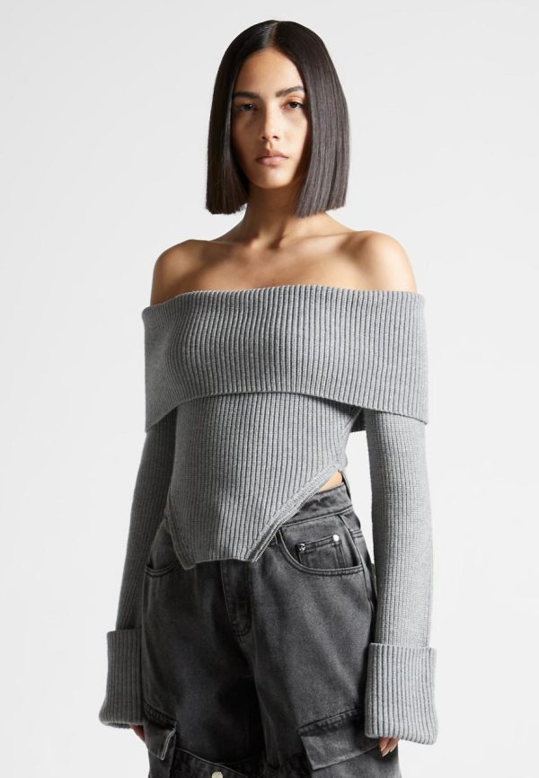 This Zip Detail Knit Bandeau Top is sure to become a staple in your wardrobe. Crafted with a bardot shape, this top is stylish and ensures a flattering fit. Enjoy comfort and style with this versatile top.