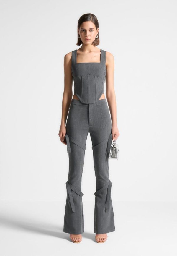 These Pinstripe Fit and Flare Leggings are designed to flatter your figure. With strap detailing and a flared silhouette, these leggings will add an extra touch of style and femininity to any look.