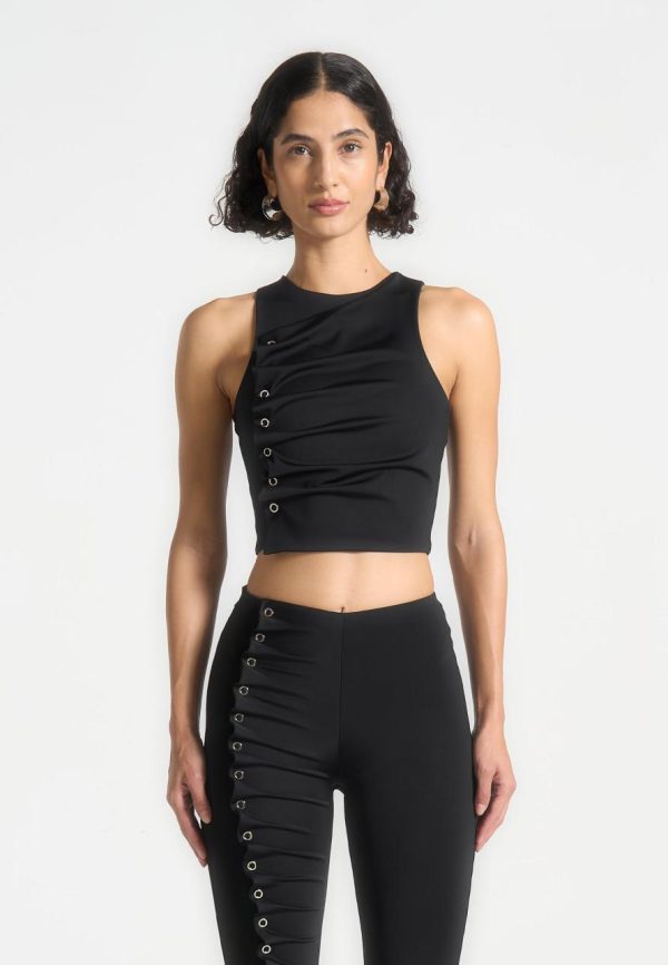Manière De Voir Matching Sets | Eyelet Detail Tacked Racer Top Black Women