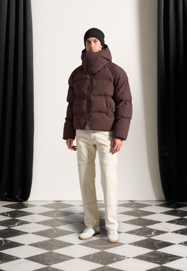 Manière De Voir Outerwear | Cropped Raglan Wrap Neck Puffer Jacket Brown Men