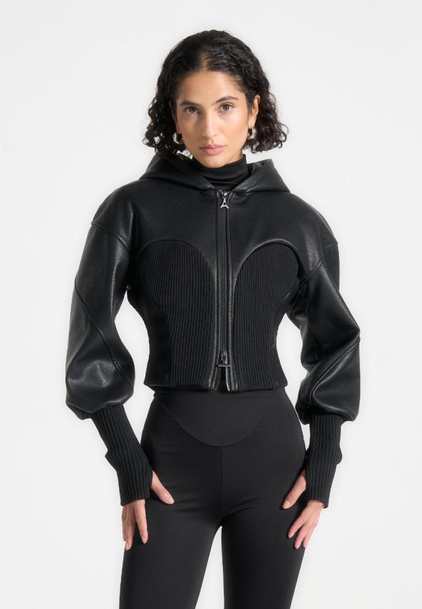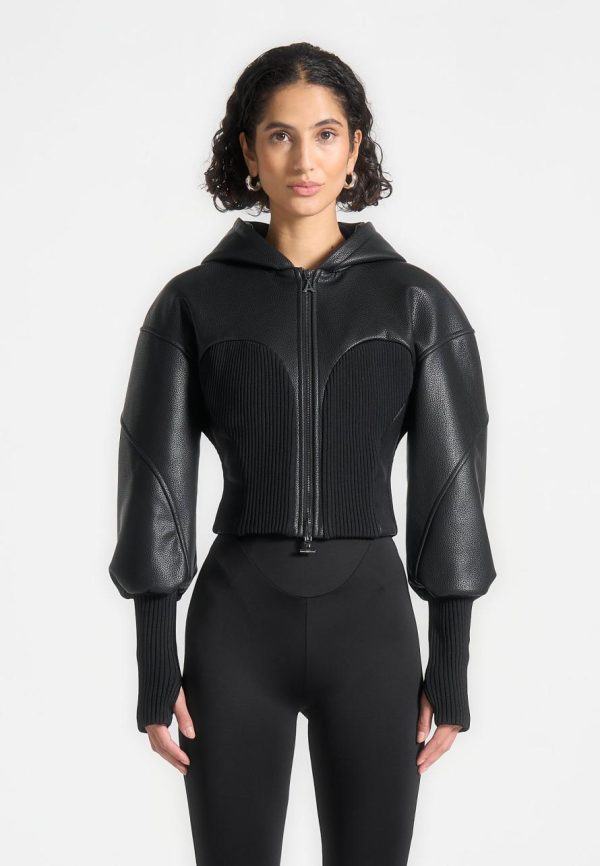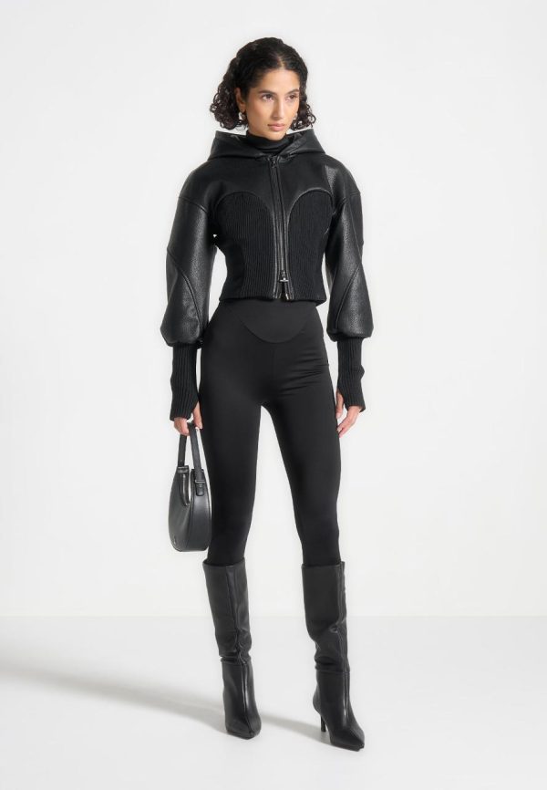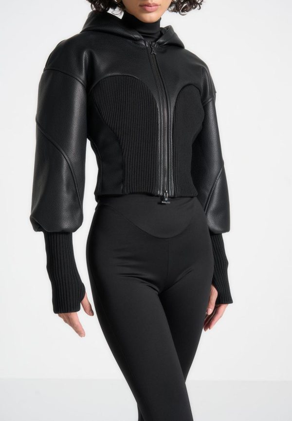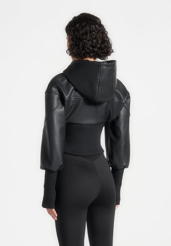 Manière De Voir Outerwear | Hooded Pebbled Leather Contour Jacket Black Women