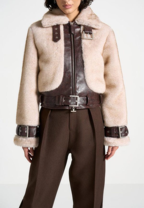 Made with luxurious leather panels and adorned with buckle detailing, this jacket offers a perfect balance of style and comfort. The plush faux fur adds an extra element of warmth and comfort, making it an ideal choice for the colder months.