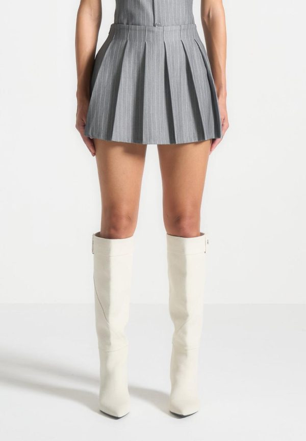 The Pinstripe Pleated Skort offers elegant style and versatility. With a zip fastening and pleat detailing, this skort is both practical and chic. The internal short add comfort and coverage. Perfect for any occasion, from work to a night out.