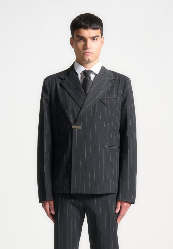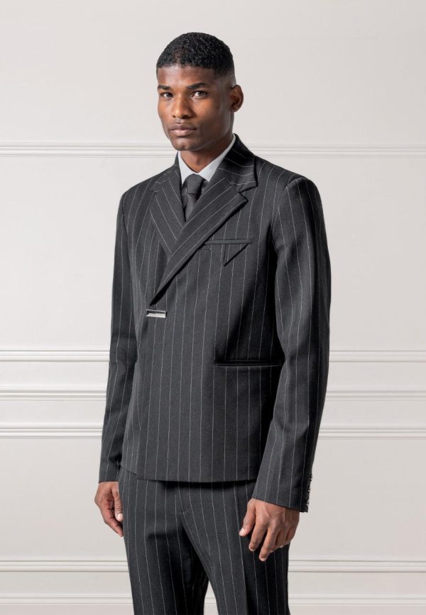Introducing the Double Breasted Pinstripe Suit Jacket in Grey. Meticulously tailored for a sleek, refined fit, it pairs effortlessly with the Regular Fit Pinstripe Tailored Trousers, creating a look that’s both contemporary and timeless.
