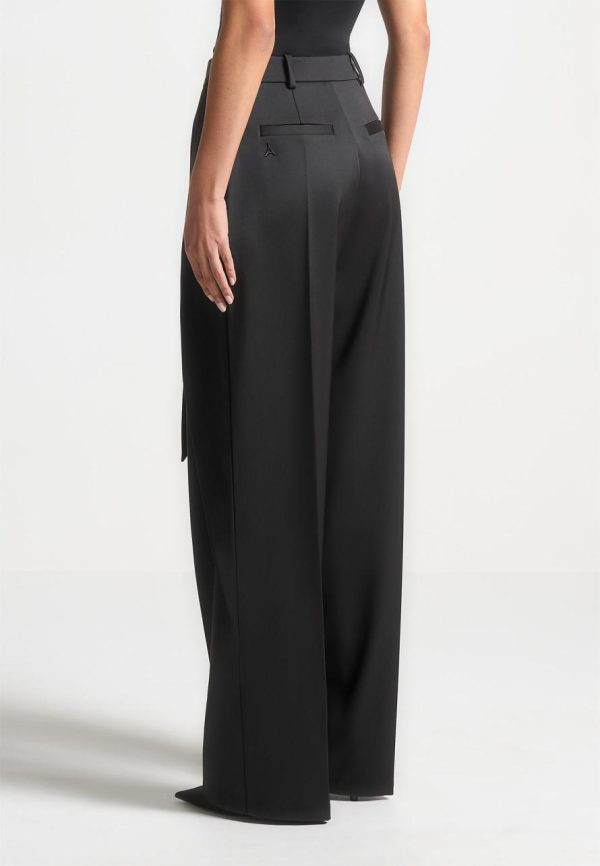 Manière De Voir Suits | Foldover Sateen Trousers With D-Ring Belt Black Women